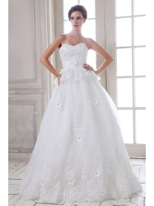 Beautiful A-line Sweetheart Brush Train Tulle Beading and Appliques Wedding Dress