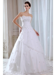 Brand New A-line Strapless Wedding Dress Appliques Floor-length Taffeta and Organza