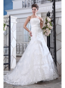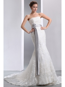 Unique Mermaid Strapless Belt Wedding Dress Court Train Lace