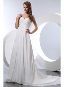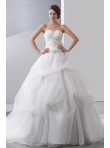 Beautiful Wedding Dress A-line Sweetheart Beading and Ruffles Chapel Train Organza