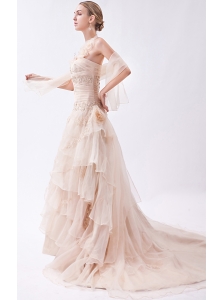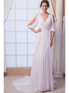 Beautiful Empire V-neck Court Train Chiffon Beading Wedding Dress