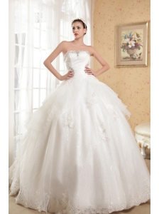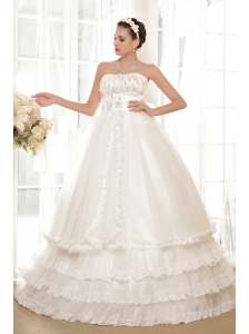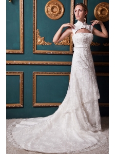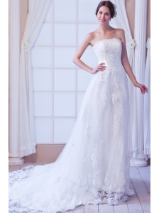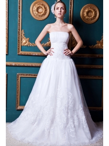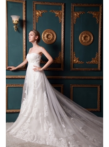Beautiful A-line Strapless Court Train Organza Lace Wedding Dress