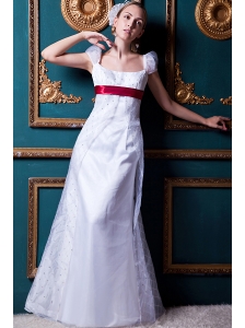Modest A-line High-low Chapel Train Lace Sash Wedding Dress
