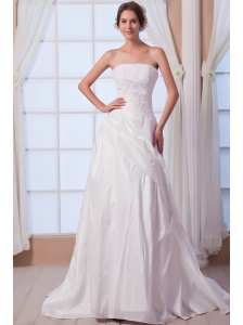 Modest A-line Strapless Court Train Taffeta Appliques Wedding Dress