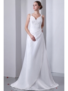 Elegant A-line Straps Wedding Dress Ruch and Beading Court Train Satin