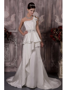 Prefect A-Line / Princess One Shoulder Court Train Taffeta Beading Wedding Dress