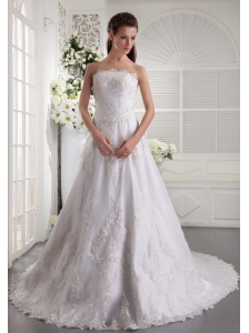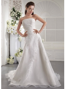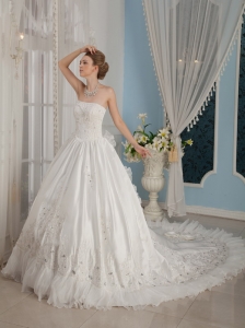 Perfect A-line Strapless Chapel Train Taffeta Appliques Wedding Dress