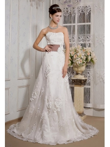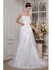 Elegant A-Line / Princess Strapless Court Train Satin and Lace Appliques Wedding Dress