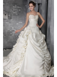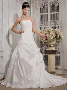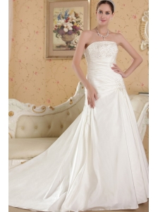 Remarkable A-Line / Princess Strapless Cathedral Train Taffeta Beading Wedding Dress