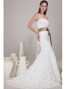 Elegant Trumpet / Mermaid Strapless Court Train Lace Sash / Ribbons Wedding Dress