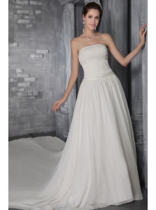 A-Line/Princess Strapless Cathedral Train Chiffon Pleat Wedding Dress