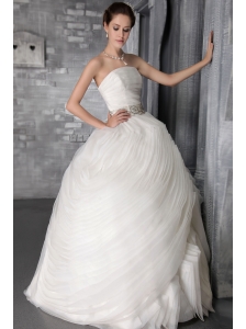 A-Line/Princess Strapless Floor-length Organza Ruffles Wedding Dress