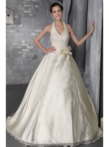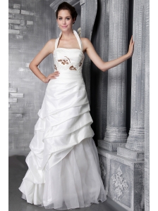 Modest A-Line / Princess Halter Floor-length Taffeta Appliques Wedding Dress