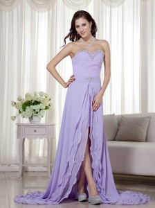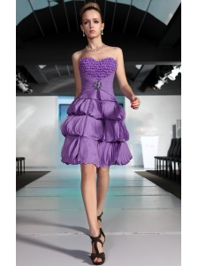 Lavender Column Sweetheart Mini-length Chiffon Beading and Ruch Prom Dress