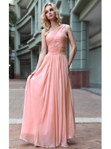 Pink Empire One Shoulder Floor-length Beading Chiffon Prom / Party Dress