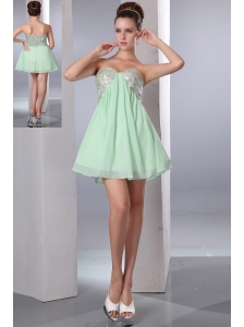 Apple Green Empire Sweetheart Short Prom Dress Chiffon and Sequin Mini-length
