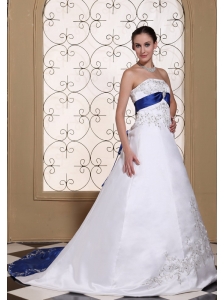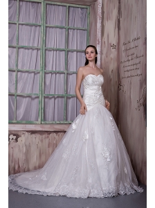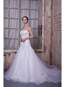 Custom Made A-line Strapless Wedding Dress Taffeta and Tulle Appliques Court Train