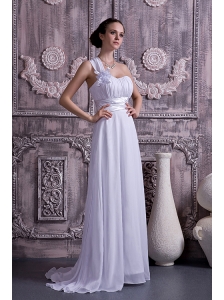 Lovely Empire Wedding Dress One Shoulder Court Train Chiffon Ruch