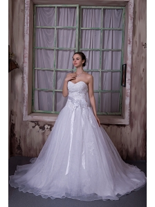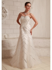 Sequins Over Bodice Sweetheart A-line Wedding Dress With Court Train Organza and Satin