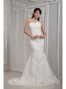 Luxurious Wedding Dress Mermaid Sweetheart Brush Train Satin Lace
