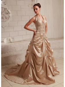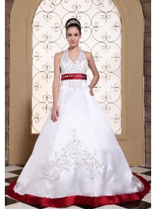 Halter Modest Wedding Dress in United States Online Beautiful Embroidery On Satin
