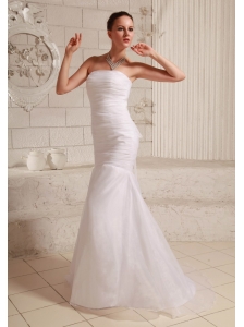 Simple Organza and Taffeta Low Cost Wedding Dress Mermaid Brush Train