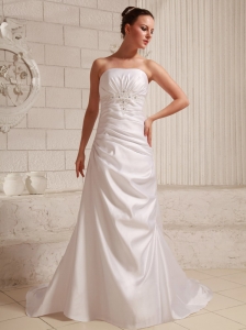 Taffeta Appliques With Beading and Ruch Low Cost Wedding Dress With Court Train A-line