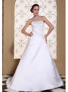 Embroidery On Satin Modest Wedding Dress For 2013 Strapless A-line Gown