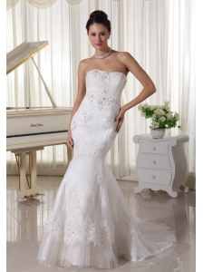 Fashionbale Appliques With Beading Mermaid Wedding Dress Sweep Train Tulle and Taffeta