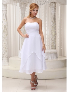 Wholesale A-line Strapless Ruch and Ruffles Tea-length Short Wedding Dress For Outdoor