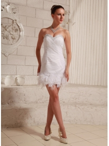 Sweetheart Beaded Feather Column Mini-length Club Short Wedding Dress Organza
