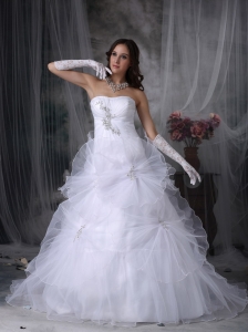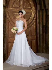 Elegant Beautiful A-line Strapless Wedding Dress Organza Embroidery Court Train
