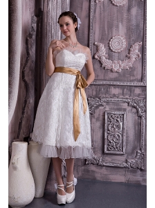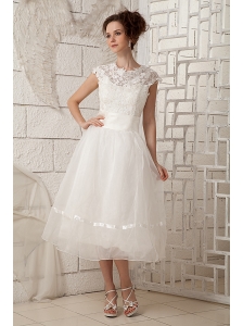 Lovely A-line Scoop Short Wedding Dress Organza Lace Tea-length