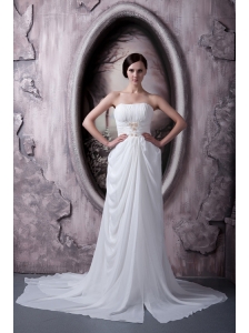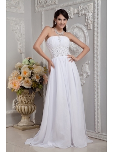 Sweet Empire Strapless Wedding Dress Chiffon Beading Brush Train