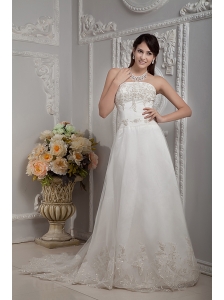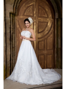 Elegant A-line Strapless Wedding Dress Appliques Lace Court Train