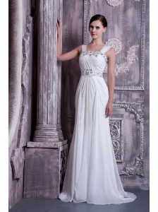 Fashionable Empire Straps Wedding Dress Beading Chiffon Brush Train