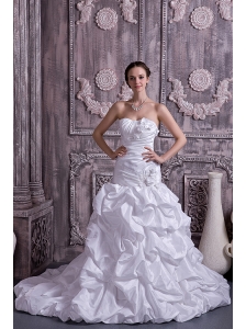 Luxurious A-line Strapless Wedding Dress Taffeta Appliques and Beading Court Train