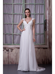 Latest Empire V-neck Wedding Dress Chiffon Appliques Brush Train
