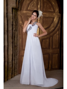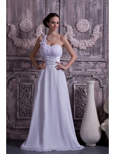 Lovely Empire One Shoulder Wedding Dress Chiffon Ruch Court Train