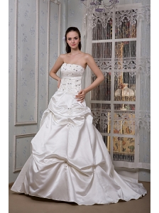 Latest A-line / Princess Strapless Wedding Dress Taffeta Beading Court Train