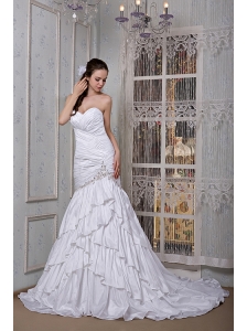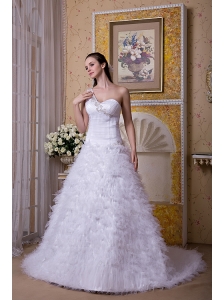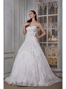Luxurious A-line Sweetheart Wedding Dress Taffeta Appliques Brush Train