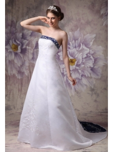 Beautiful A-line Strapless Wedding Dress Satin Embroidery Chapel Train