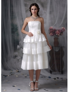 Beautiful Empire Strapless Short Wedding Dress Organza Hand Made Flower Tea-length