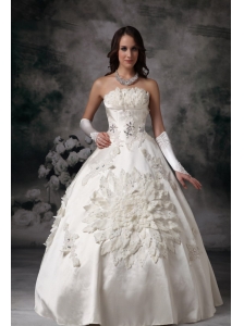 Classical Wedding Dress Ball Gown Strapless Satin Appliques Floor-length