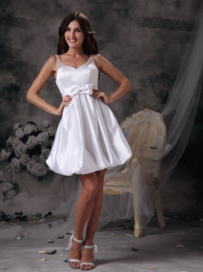 Customize Column Straps Short Wedding Dress Taffeta Bow Mini-length