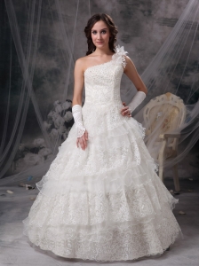Customize Wedding Dress A-line One Shoulder Satin and Lace Floor-length