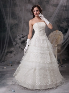 Fashionable Wedding Dress A-line Strapless Satin and Lace Floor-length