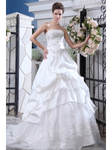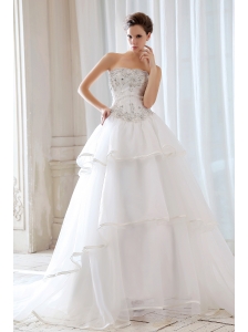 Affordable A-line Strapless Beading and Appliques Wedding Dress Court Train Organza