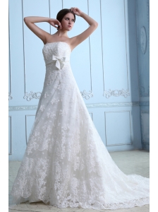 Beautiful Wedding Dress A-line Strapless Court Train Lace Sash