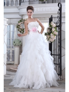 Brand New A-line Strapless Beading and Appliques Wedding Dress Brush Train Tulle